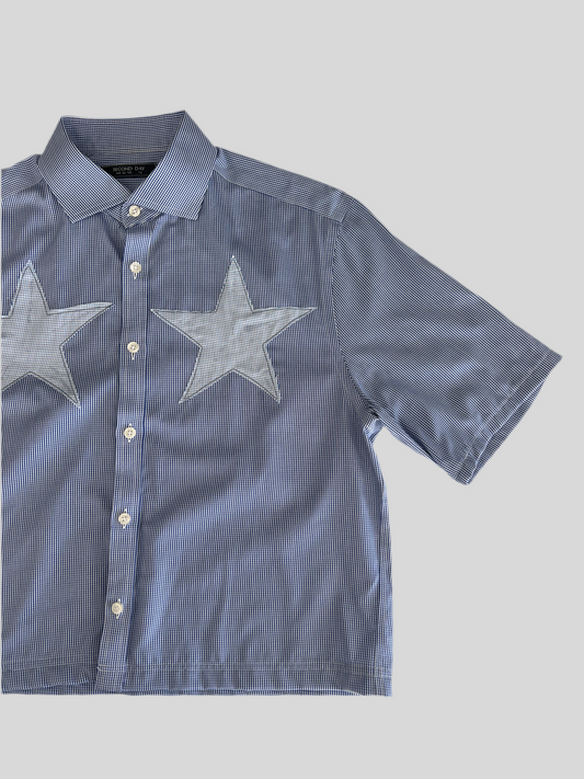 Reworked Blue Star Patch Cropped Button Up Collar Shirt